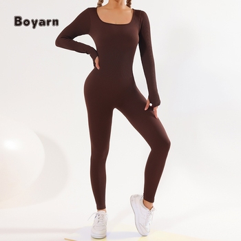 ערכת יוגה לנשים ערכת יוגה סרבלים יוגה חליפות חתיכה אחת אימון שרוול ארוך rompers ספורט ספורט בגדי אימון לנשים